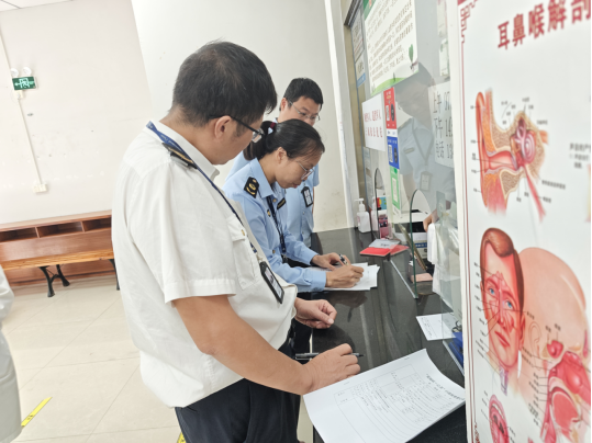 在聯(lián)合監(jiān)督檢查過程中,兩部門執(zhí)法人員依據(jù)各自職責,分工協(xié)作、密切配合。我中心執(zhí)法人員重點檢查了醫(yī)療機構的依法執(zhí)業(yè)情況、醫(yī)療廢物管理、院感防控工作落實情況、醫(yī)務人員執(zhí)業(yè)注冊情況等,并查看了相關清潔消毒登記資料。經(jīng)過認真詳細的檢查后,執(zhí)法人員當場將檢查情況反饋至醫(yī)療機構負責人。