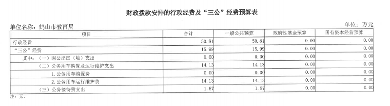 2026年鶴山市教育局財(cái)政撥款安排的行政經(jīng)費(fèi)及“三公”經(jīng)費(fèi)預(yù)算表
