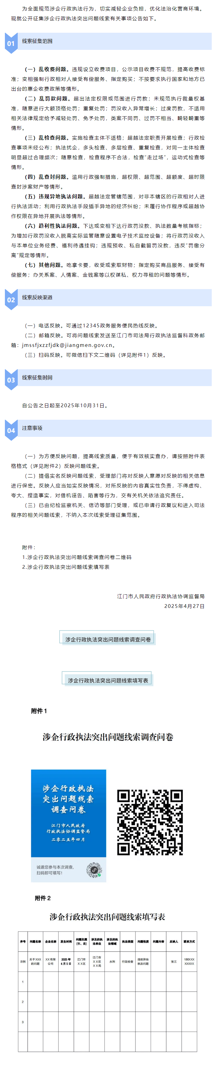 關(guān)于公開征集涉企行政執(zhí)法突出問題線索的公告