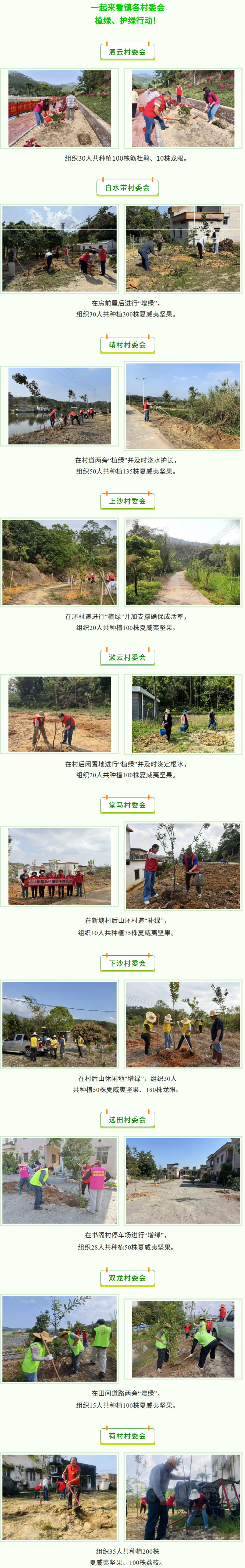 春回大地,植綠當(dāng)時(shí)。為深入推進(jìn)綠美廣東生態(tài)建設(shè),3月17日,宅梧鎮(zhèn)組織開(kāi)展了2026年五級(jí)林長(zhǎng)聯(lián)動(dòng)義務(wù)植樹(shù)活動(dòng)。全鎮(zhèn)上下積極響應(yīng),共同播種綠色希望。鎮(zhèn)會(huì)場(chǎng)設(shè)在泗云云獨(dú)村,種植100株簕杜鵑、10株龍眼。其他村委會(huì)同步開(kāi)展植樹(shù)活動(dòng),全鎮(zhèn)共種植1500株苗木,其中100株簕杜鵑、1110株夏威夷堅(jiān)果樹(shù)苗、230株龍眼、100株荔枝。