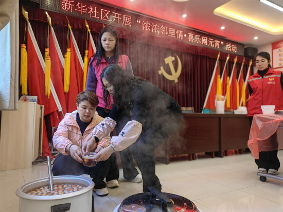 ▲沙坪街道新華社區(qū)開(kāi)展“濃濃鄰里情喜樂(lè)鬧元宵”活動(dòng)