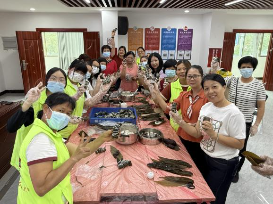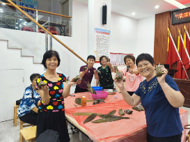 ▲興業(yè)社區(qū)新時代文明實踐站開展“粽有千般巧,手作樂無窮”龍舟毛氈包制作活動