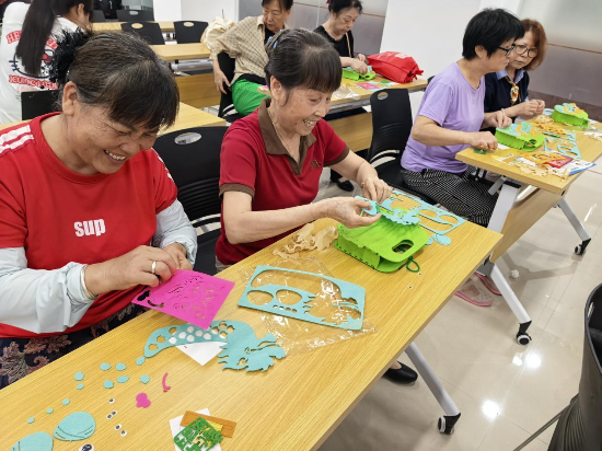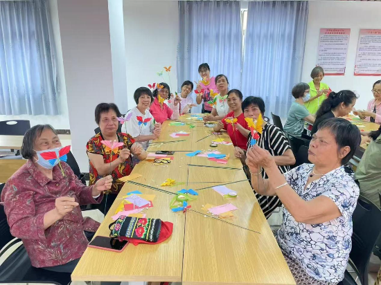 ▲新業(yè)社區(qū)新時代文明實踐站開展蝴蝶手工花制作活動